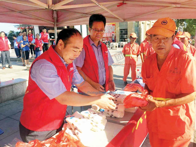 炎炎夏日,為給辛勤工作的環(huán)衛(wèi)工人送去一份關(guān)愛,中鼎減震黨支部聯(lián)合工會、女工委、團(tuán)支部及部分管理干部組織了一場“情系環(huán)衛(wèi)工,盛夏送清涼”活動。8月19日,志愿者們在南山公園和時代廣場各設(shè)立一個納涼點,為到來的每一位環(huán)衛(wèi)工人送上了慰問品。隨后,大家還拿起掃帚、抹布等清掃工具跟隨環(huán)衛(wèi)工人一起走上街頭撿拾垃圾、擦垃圾桶,并向過往行人宣傳“不亂扔垃圾,從我做起”。