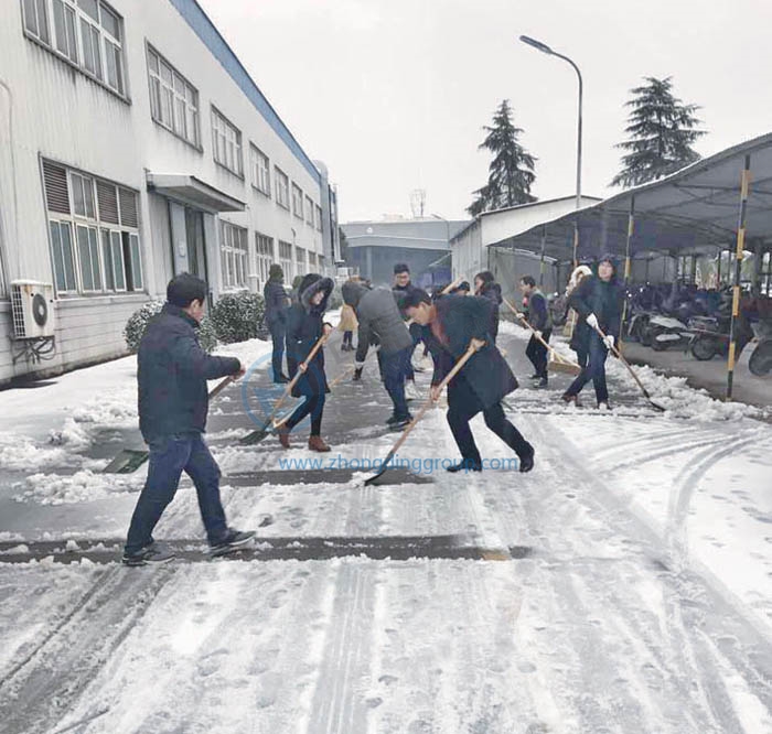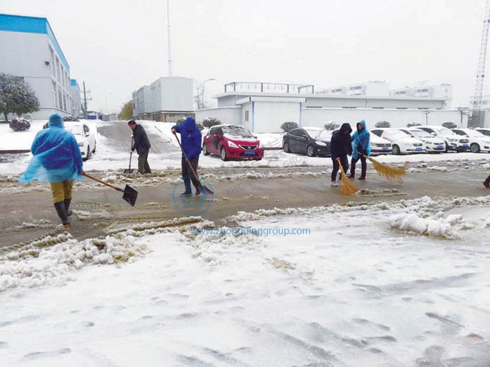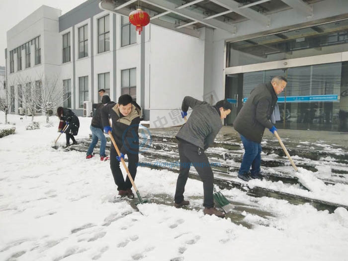 1月24日下午,2018年的第一場雪如預而至,雪下了一夜,25日整個廠區(qū)積滿了雪,為保障員工、車輛正常出行,將強降雪對員工工作、生活的影響降到最低,中鼎人積極投入到鏟冰除雪活動中。