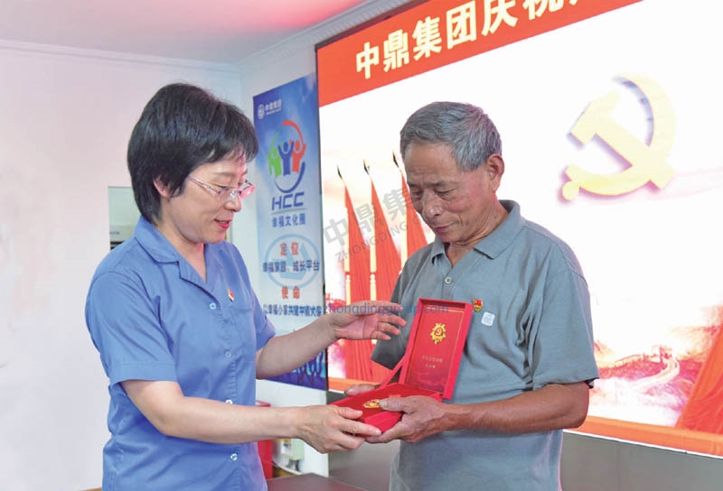 會上,集團黨委副書記梁艷為50年黨齡的老黨員陳關有頒發(fā)“光榮在黨50年”紀念章,并送上慰問金2000元。