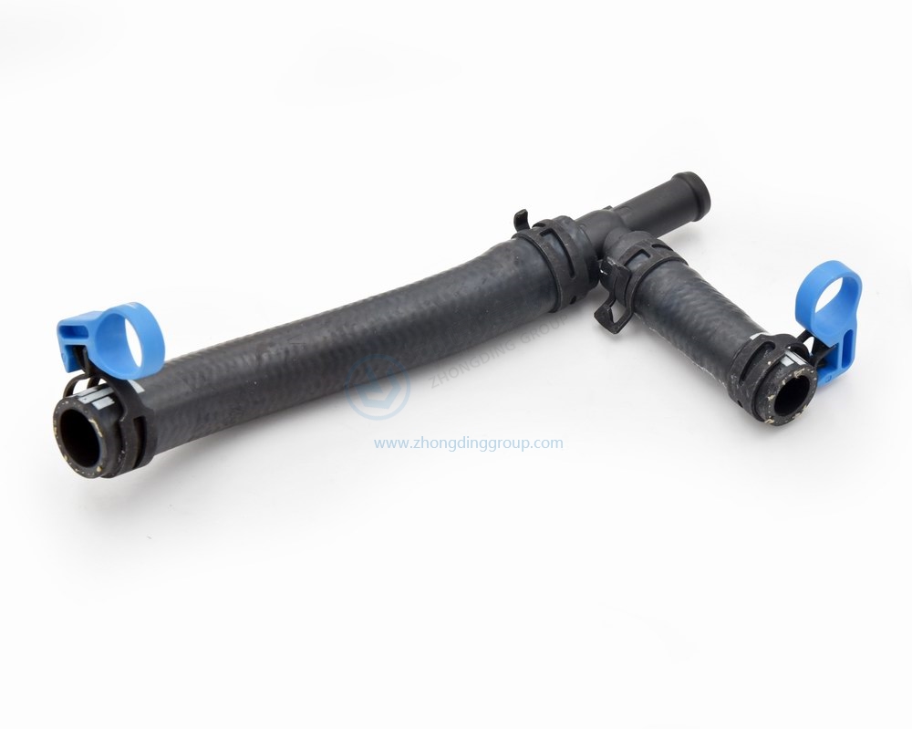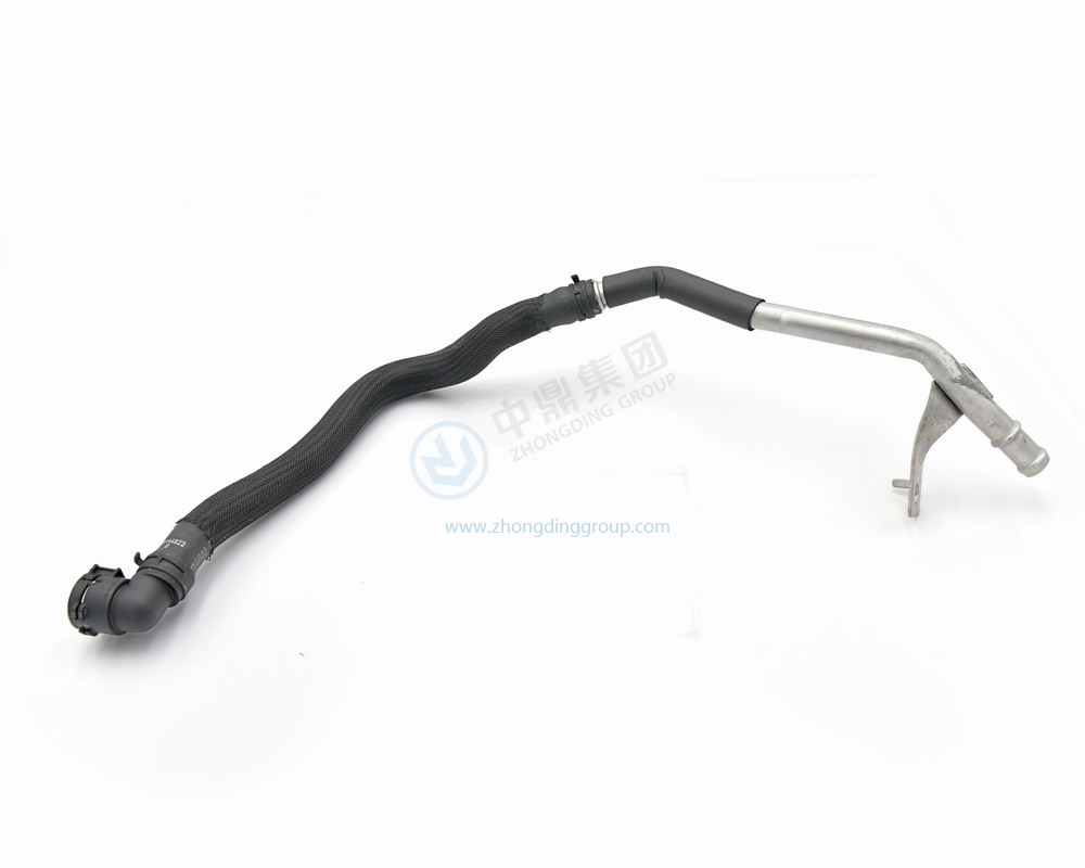 冷卻系統(tǒng)管路裝配于汽車發(fā)動(dòng)機(jī)上,或發(fā)動(dòng)機(jī)與散熱器、加熱器、膨脹箱之間,主要輸送防凍液,起為發(fā)動(dòng)機(jī)散熱的作用。根據(jù)裝配位置不同,可分為散熱器進(jìn)、出水管,加熱器進(jìn)、出水管、溢流管等。隨著新能源車的出現(xiàn),電池冷卻系統(tǒng)所用膠管也屬于此類管路。此類膠管一般采用EPDM橡膠,采用芳綸針織結(jié)構(gòu),具有優(yōu)異的耐高、低溫性能及耐防凍液、耐疲勞性能。