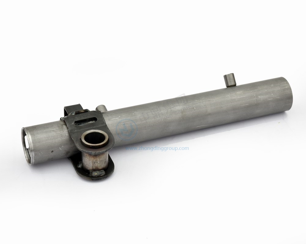 The product is hydraulic steering cylinder component, and use programmable automatic hydraulic punching machine, punching from within to ensure that the steel pipe in wall is free from burrs; use programmable automatic welding machine welding nozzle to ensure efficient, stable and accurate welding. Use imported MAG welding robot for holder welding to improve welding efficiency and accuracy.