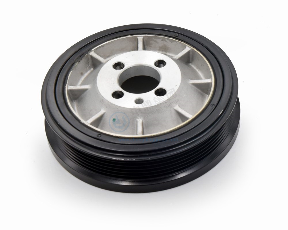 Through the damping and elastic properties of rubber materials, to reduce the torsional vibration of crankshaft, improve the fatigue life of crankshaft, reduce the stress level, transfer torque, and damping torque fluctuation; reduce the vibration and noise of the vehicle. The component used in the crankshaft end of the engine, to reduce crankshaft vibration and transfer torque.